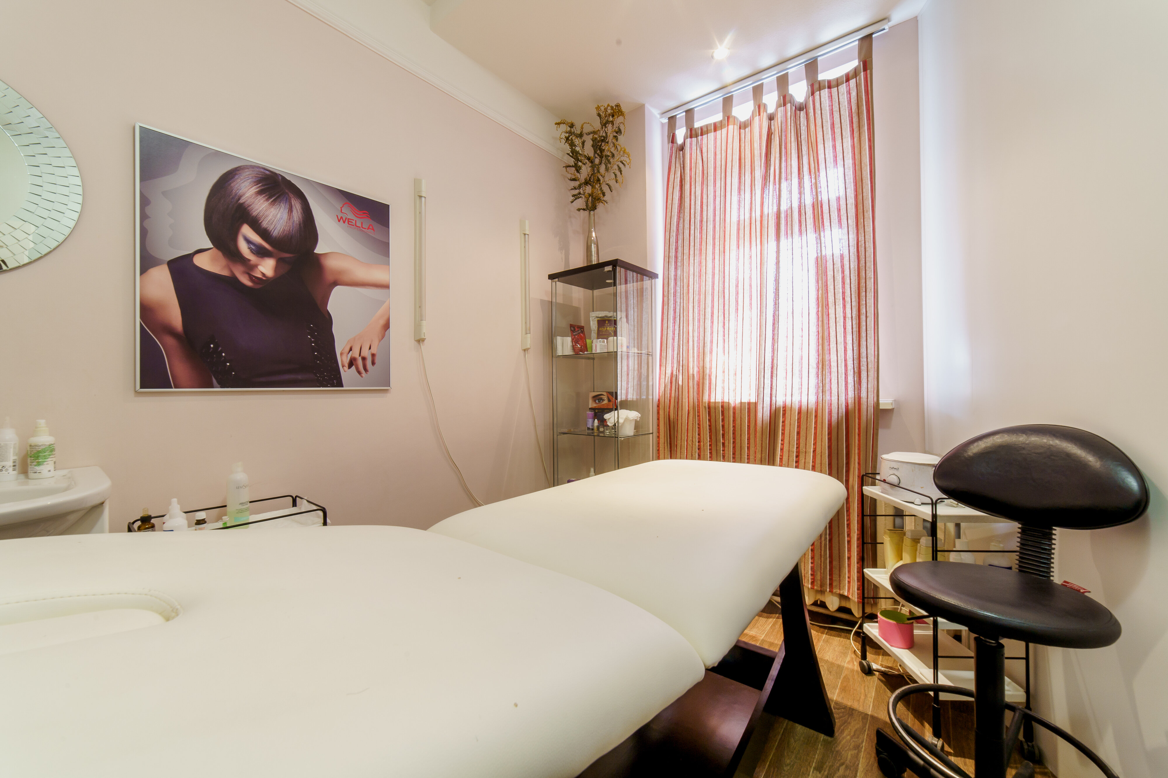 Также к услугам наших гостей массаж головы и лица, эпиляция, чистка лица, шугаринг, аппаратная и традиционная косметология, пилинг, солярий, гиалуроновая кислота, архитектура бровей, окрашивание ресниц, перманентный макияж, мелирование, тонирование, выпрямление, наращивание, укладка, химическая завивка, биозавивка и маски для волос, вечерние и свадебные прически, свадебный макияж, мужские стрижки, аппаратный и традиционный педикюр, спа-уход для ногтей.
